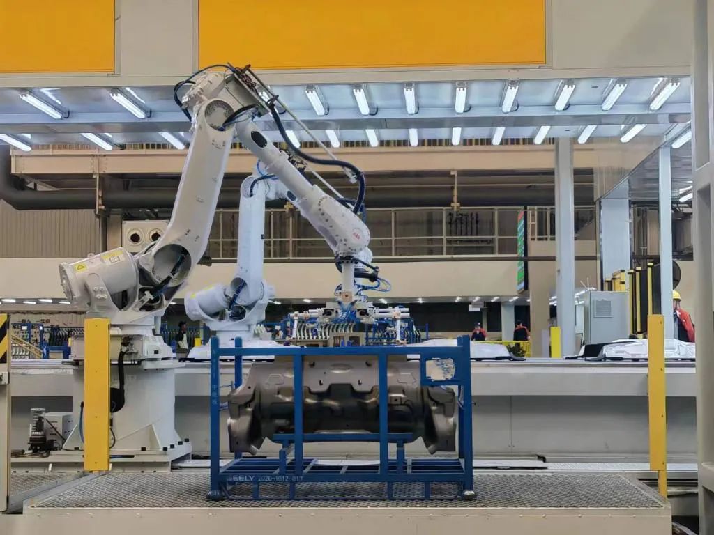 △陜西某品牌汽車工廠沖壓車間機器人正在自動抓件。