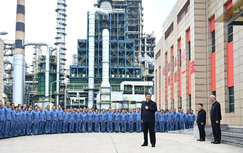 △2023年10月10日,習(xí)近平總書記在江西中國石化九江分公司考察時,同企業(yè)員工親切交流。