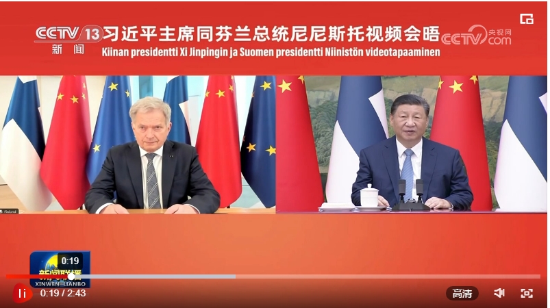 1月10日下午,國家主席習(xí)近平同芬蘭總統(tǒng)尼尼斯托舉行視頻會晤。