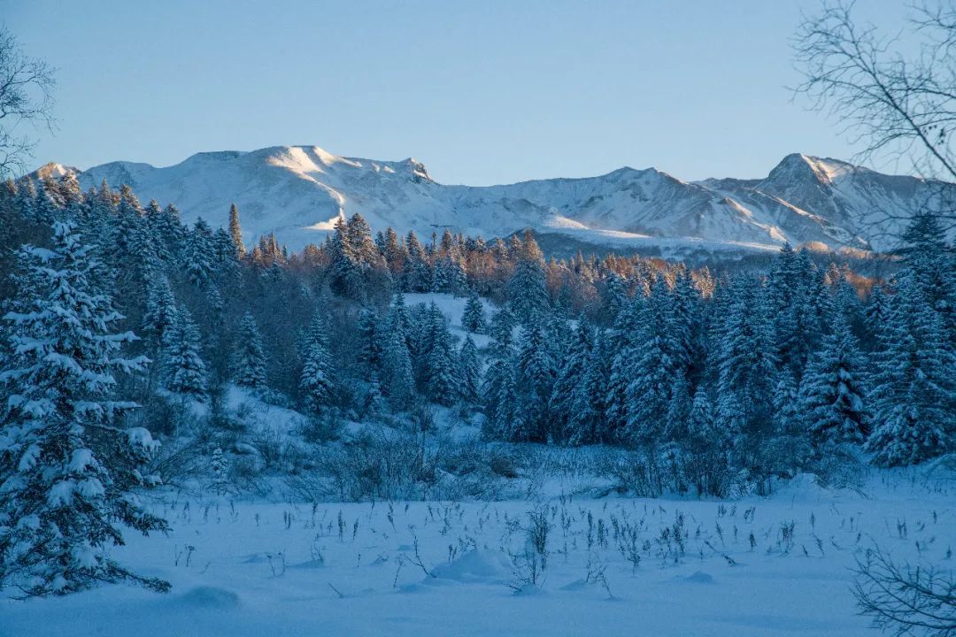 △2023年12月17日,吉林撫松縣松江河鎮(zhèn),長(zhǎng)白山西坡為大雪覆蓋,景色如畫。