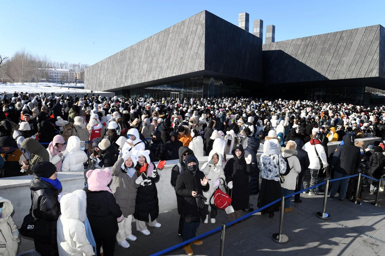 2024年1月15日,哈爾濱,侵華日軍第七三一部隊(duì)罪證陳列館門(mén)口排隊(duì)的游客整齊有序。