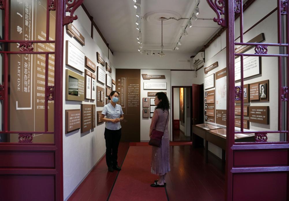 圖為觀眾在中國共產(chǎn)黨發(fā)起組成立地(《新青年》編輯部)舊址內(nèi)參觀。新華社記者 劉穎 攝