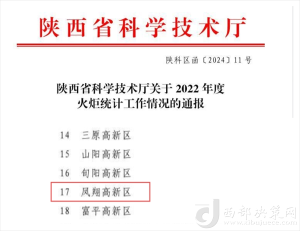 西部決策網(wǎng)訊 近日,陜西省科技廳下發(fā)了2022年度火炬統(tǒng)計(jì)工作情況的《通報(bào)》,鳳翔高新區(qū)在火炬統(tǒng)計(jì)工作中完成任務(wù)及時(shí)、填報(bào)審核嚴(yán)格、工作成效突出,被省科技廳通報(bào)表?yè)P(yáng),這已經(jīng)是鳳翔高新區(qū)連續(xù)四年獲通報(bào)表?yè)P(yáng)。