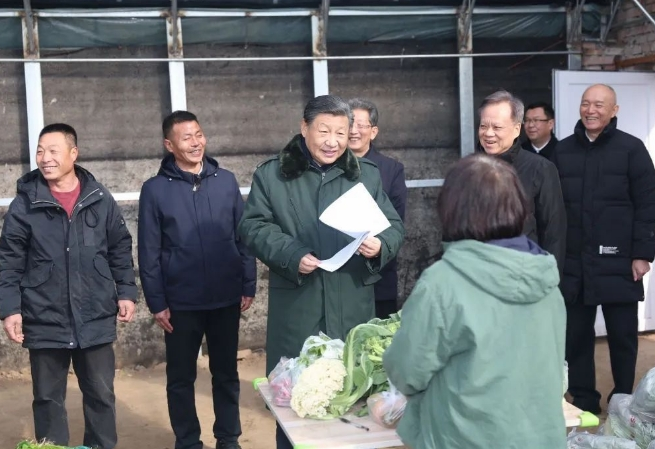 習近平握住一位農(nóng)民的手:“我們應該感謝你們的辛勤勞動,豐富了春節(jié)的‘菜籃子’。”