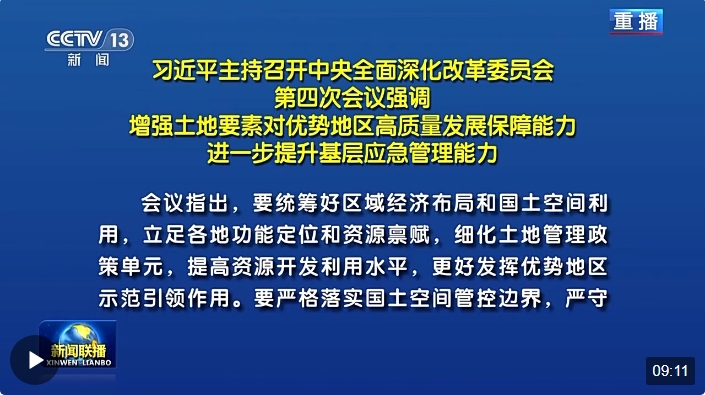 中共中央總書記、國家主席、中央軍委主席、中央全面深化改革委員會主任習近平2月19日下午主持召開中央全面深化改革委員會第四次會議,審議通過了《關(guān)于改革土地管理制度增強對優(yōu)勢地區(qū)高質(zhì)量發(fā)展保障能力的意見》、《關(guān)于促進經(jīng)濟社會發(fā)展全面綠色轉(zhuǎn)型的意見》、《關(guān)于進一步提升基層應(yīng)急管理能力的意見》、《關(guān)于加快形成支持全面創(chuàng)新的基礎(chǔ)制度的意見》、《中央全面深化改革委員會2023年工作總結(jié)報告》、《中央全面深化改革委員會2024年工作要點》。