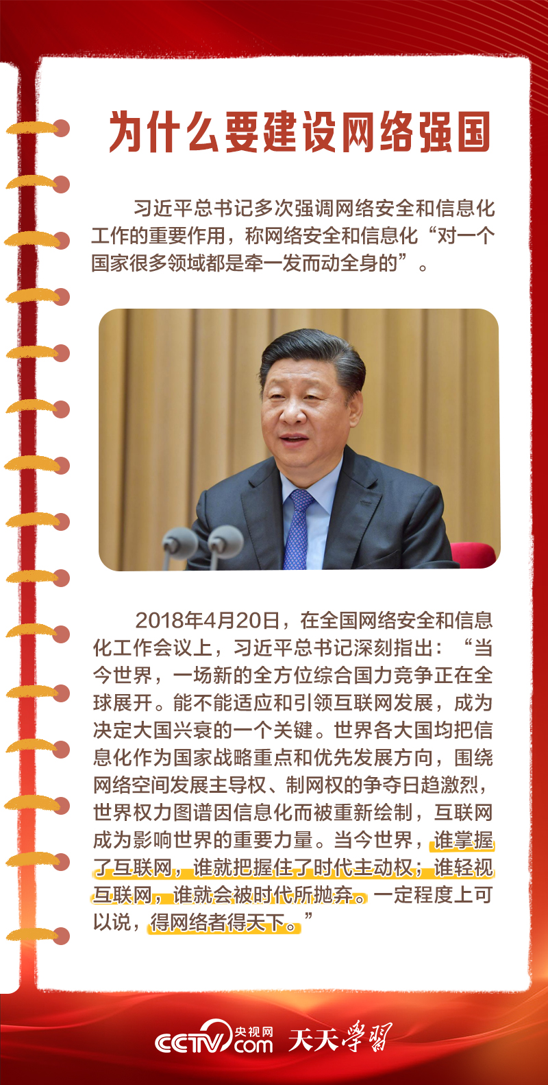 為何要建設(shè)網(wǎng)絡(luò)強(qiáng)國?總書記謀劃了一條怎樣的網(wǎng)絡(luò)強(qiáng)國之路?央視網(wǎng)《天天學(xué)習(xí)》與您一起學(xué)習(xí)思考。