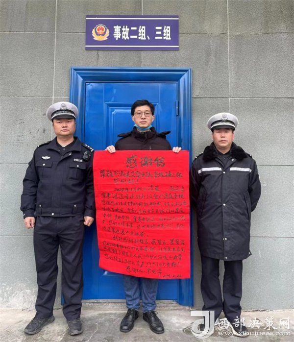 西部決策網(wǎng)訊 2月22日,天空中飄著雪花,但寒冷的天氣抵擋不住家屬感恩的心,當(dāng)事人陳某兒子金曉華手持“感謝信”等待出警未歸的辦案民警。