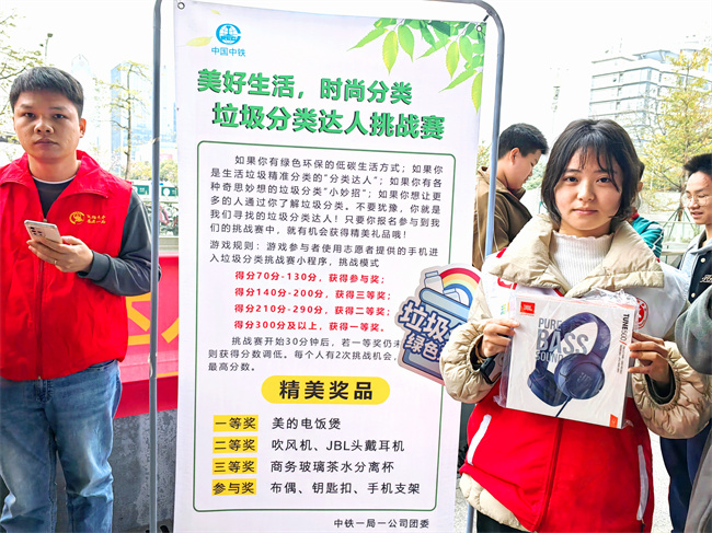 為引導(dǎo)社會(huì)各界支持和理解垃圾分類工作,廣泛動(dòng)員公眾積極參與,進(jìn)一步促進(jìn)習(xí)慣養(yǎng)成和文明素質(zhì)提升,持續(xù)營造濃厚的垃圾分類社會(huì)氛圍。3 月 3 日,中鐵一局一公司團(tuán)委在番禺區(qū)圖書館廣場舉辦了“美好生活,時(shí)尚分類”垃圾分類達(dá)人挑戰(zhàn)賽!