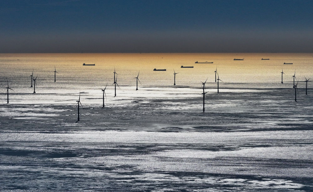 這是2023年12月22日拍攝的河北省唐山市海港經(jīng)濟(jì)開發(fā)區(qū)轄區(qū)內(nèi)的海上風(fēng)電場(chǎng)(無(wú)人機(jī)照片)。
