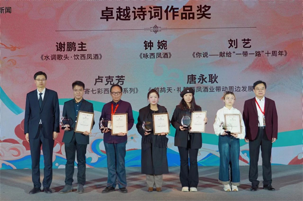 西部決策網(wǎng)訊(記者劉玉韓宗憲通訊員張?zhí)炝Ⅵ梦姆澹┰娋莆幕瑴嘏澜纭?月7日,以“詩酒飄香、悅享世界”為主題的“一帶一路”西鳳酒詩詞大會頒獎典禮在西安隆重舉行。中央電視臺原臺長,光明日報社原總編輯,第十屆中國文聯(lián)副主席胡占凡,著名作家、中國作家協(xié)會社聯(lián)部主任李曉東,中華詩詞學會常務副會長林峰,央視百家講壇主講人、鄭州大學文學院教授王士祥,中華詩詞學會評論部副主任,火箭軍工程大學原副校長杭中華,央視《中國詩詞大會》學術總負責人李定廣,中華詩詞學會顧問,陜西省詩詞學會會長孟建國,著名酒文化專家、山東社會科學院歷史所研究員王賽時,西北大學歷史學院副教授、中國文明史研究院研究員路中康。網(wǎng)易傳媒副總裁李淼,網(wǎng)易傳媒華北銷售中心副總經(jīng)理于洋。西鳳集團公司黨委書記、董事長、股份公司董事長張正,西鳳股份公司總經(jīng)理張周虎,西鳳集團公司黨委副書記、工會主席郭拴新,西鳳股份公司副總經(jīng)理周艷花、高亞蘭,西鳳酒股份有限公司總文化顧問高洪濤以及《人民日報》、新華社、新浪、網(wǎng)易、鳳凰網(wǎng)、《華爾街日報》、英國衛(wèi)報、中國經(jīng)營報、每日經(jīng)濟新聞、北京日報、陜西日報等50多家媒體代表,詩詞愛好者參加會議。新華直播、網(wǎng)易新聞、西鳳股份公眾號、抖音平臺對大會進行了現(xiàn)場直播。