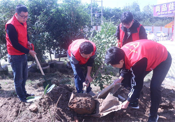 活動中,大家分工明確,互幫互助,用自己的勞動詮釋著對大自然生命的關(guān)愛,并在相互配合中享受著一片綠色的春意。
