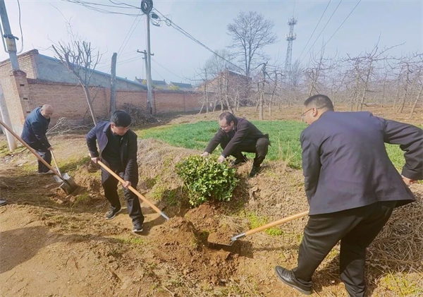 西部決策網(wǎng)訊(記者劉玉 韓宗憲 通訊員 張亞強(qiáng) 李凌月)惠風(fēng)和暢春意濃,植樹添綠正當(dāng)時(shí)。3月12日上午,寶雞市鳳翔區(qū)范家寨鎮(zhèn)組織70余名機(jī)關(guān)干部到湫池廟村開展“擁抱春天 播種綠色”植樹活動(dòng),共同迎接全國第46個(gè)植樹節(jié)。