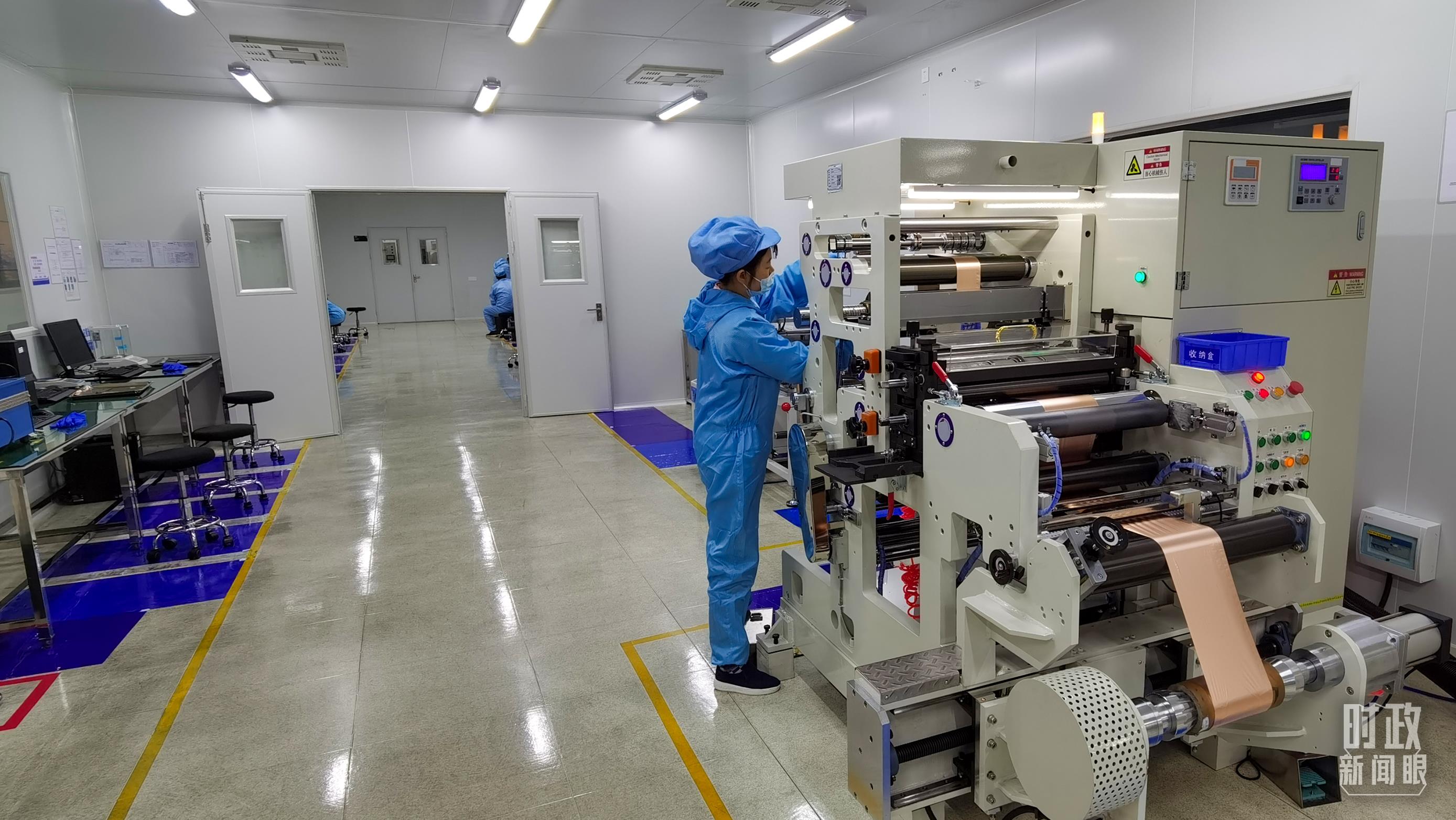 △企業(yè)員工將冷壓后的極片裁出規(guī)定尺寸,用于鋰電池制作。(總臺(tái)央視記者郭鴻拍攝)