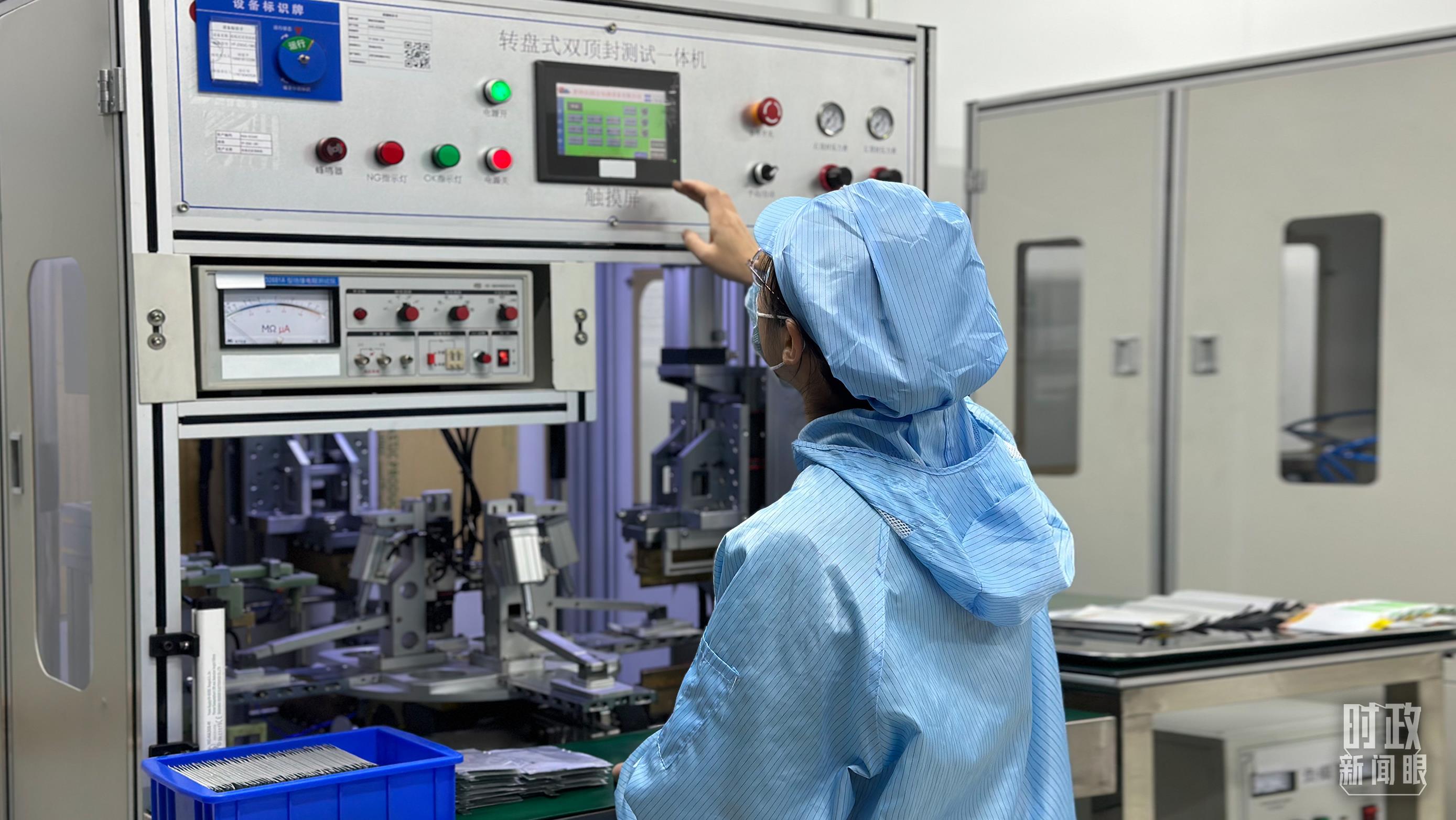 △企業(yè)電池技術(shù)中心內(nèi),員工正在進(jìn)行電池封裝。(總臺(tái)央視記者盧心雨拍攝)