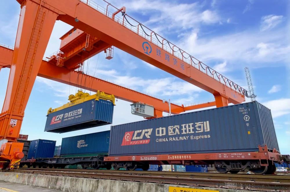 △2022年4月29日,在安徽合肥北站物流基地集裝箱作業(yè)區(qū),準備發(fā)運的中歐班列集裝箱。