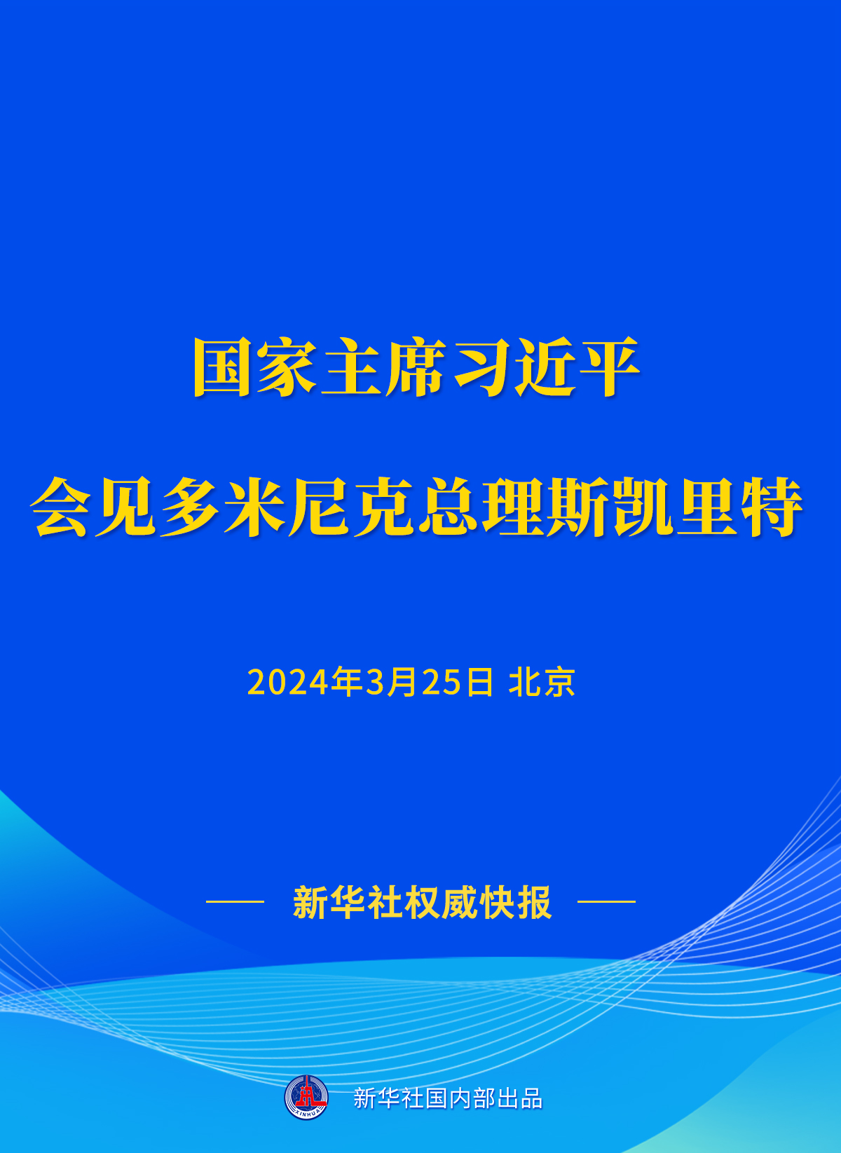 3月25日下午,國家主席習近平在人民大會堂會見來華進行正式訪問的多米尼克總理斯凱里特。